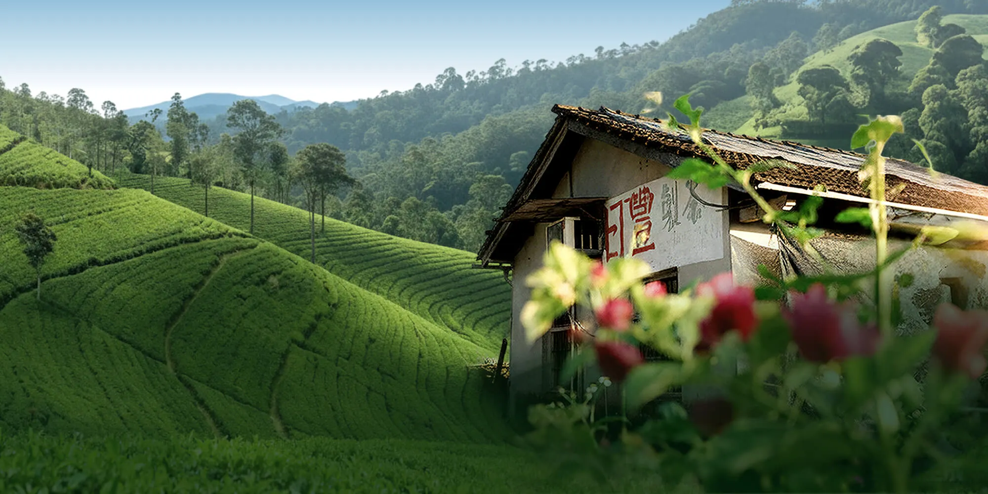 茶園坐落於山巒環抱之中,